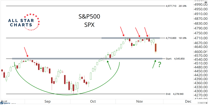 J.C. Parets of the All Star Charts blog writes that things could get dicey if the S&P 500 is driven below 4,500, with little support beneath that point.